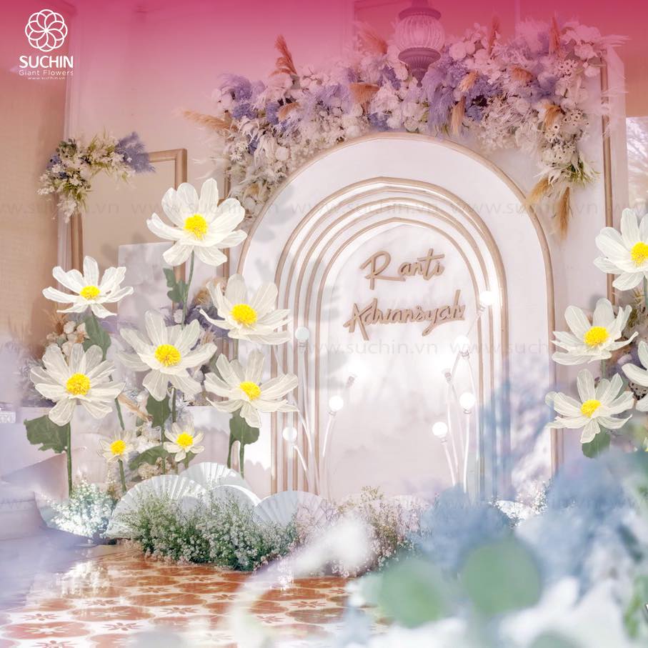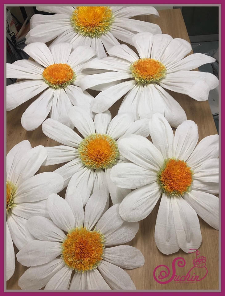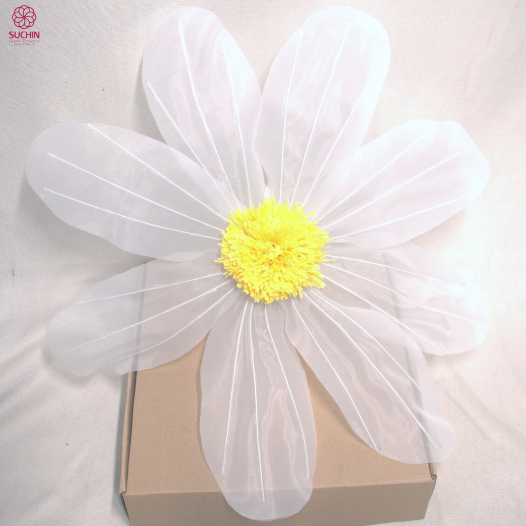 Hoa giấy Suchin chuyên thiết kế và gia công hoa khổng lồ. Chúng tôi thi công hàng ngàn mẫu hoa khổng lồ khác nhau, thi công trang trí cho các sự kiện, tiệc cưới, trang trí cửa hàng, nội thất, quán cafe, cửa hàng spa, trung tâm thương mại,… Trong đó, cúc họa mi khổng lồ là mẫu hoa rất được ưa thích vì vẻ đẹp nhẹ nhàng, mộng mơ.